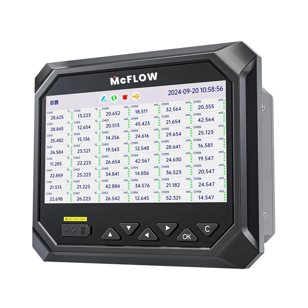 This industrial paperless recorder is equipped with a 7-inch TFT full-color high-contrast liquid crystal display, featuring a resolution of 1024*600. It seamlessly integrates various industrial standard signals, such as current, voltage, thermocouples, thermistors, resistors, and frequency (customizable), enabling real-time display, recording, limit monitoring, report generation, data communication, signal transmission, and functions like flow accumulation, as well as flow temperature and pressure compensation. It is widely applicable in industries such as metallurgy, petrochemicals, construction materials, papermaking, power, food, pharmaceuticals, and industrial water treatment.This industrial paperless recorder is equipped with a 7-inch TFT full-color high-contrast liquid crystal display, featuring a resolution of 1024*600. It seamlessly integrates various industrial standard signals, such as current, voltage, thermocouples, thermistors, resistors, and frequency (customizable), enabling real-time display, recording, limit monitoring, report generation, data communication, signal transmission, and functions like flow accumulation, as well as flow temperature and pressure compensation. It is widely applicable in industries such as metallurgy, petrochemicals, construction materials, papermaking, power, food, pharmaceuticals, and industrial water treatment.