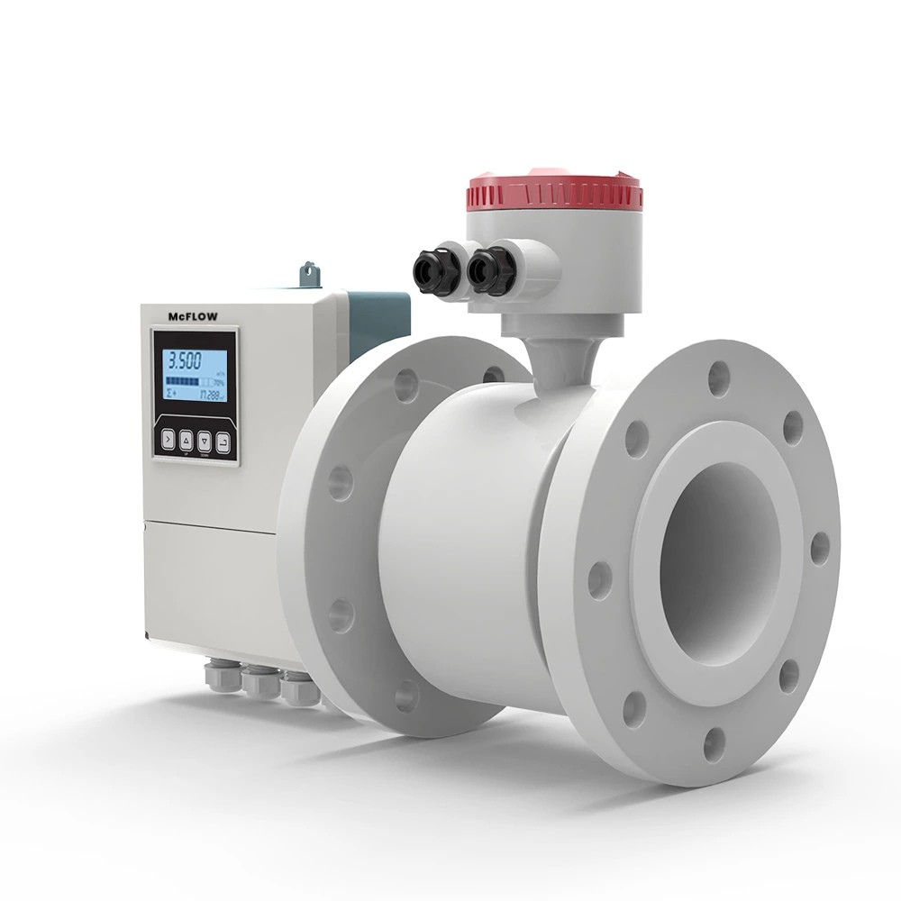 Mag meter works based on Faraday’s law, and measure conductive medium with conductivity more than 5 μs/cm and flow range from 0.2 to 15 m/s. An Electromagnetic Flowmeter is a volumetric Flowmeter that measures the flow velocity of a liquid through a pipe.